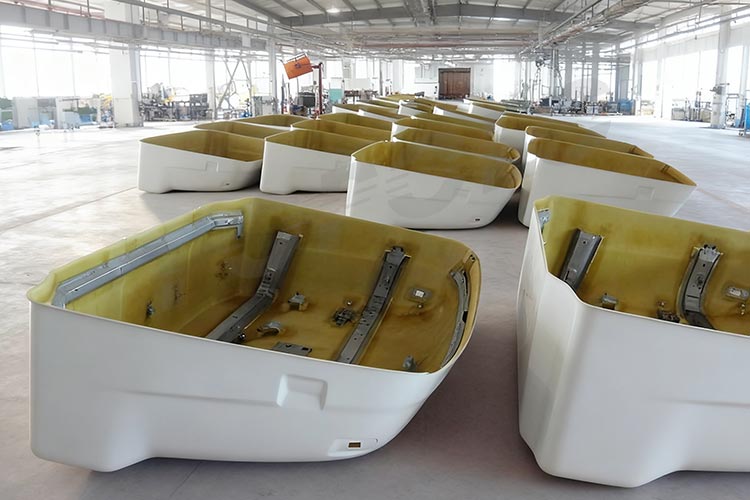 Le déflecteur d’air est fabriqué selon un procédé de stratification manuelle, dans lequel le renfort en fibre de verre est placé manuellement dans le moule et imprégné de résine. Cette méthode traditionnelle offre une grande flexibilité – presque tous les types de renforts peuvent être utilisés, y compris les nattes de fibres coupées ou les tissus tissés. Le rapport résine/catalyseur peut être ajusté pour obtenir la vitesse de polymérisation et les performances mécaniques souhaitées.
