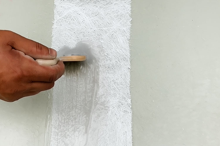 Utilisez une résine polyester insaturée de qualité piscine mélangée à de la fibre de verre pour remplir et sceller les joints des panneaux, formant ainsi une couche imperméable, étanche et durable.