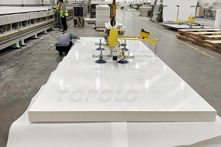 Les panneaux composites TOPOLO pour piscines sont fabriqués en combinant une âme en mousse PET (polyéthylène téréphtalate) et des revêtements en PRFV (plastique renforcé de fibres de verre), formant ainsi une structure sandwich robuste offrant un équilibre parfait entre résistance, stabilité et légèreté pour la construction de piscines.